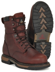 With Rocky's guaranteed ROCKY waterproof construction, your feet will stay dry all day long... rain, sleet or snow! ANSI approved steel toe. The extra-durable double ribbed steel shank keeps this boot comfortable all day long! The ventilated polyurethane contoured footbed allows your foot to breathe. The midsole is made up of a lightweight shock absorbing, flexible & oil-resistant EVA material. These boots feature the 7-layer slip and oil resistant Iron Clad outsole that provides suppose and unparalleled cushioning that everyone has grown to love from Rocky Boots!